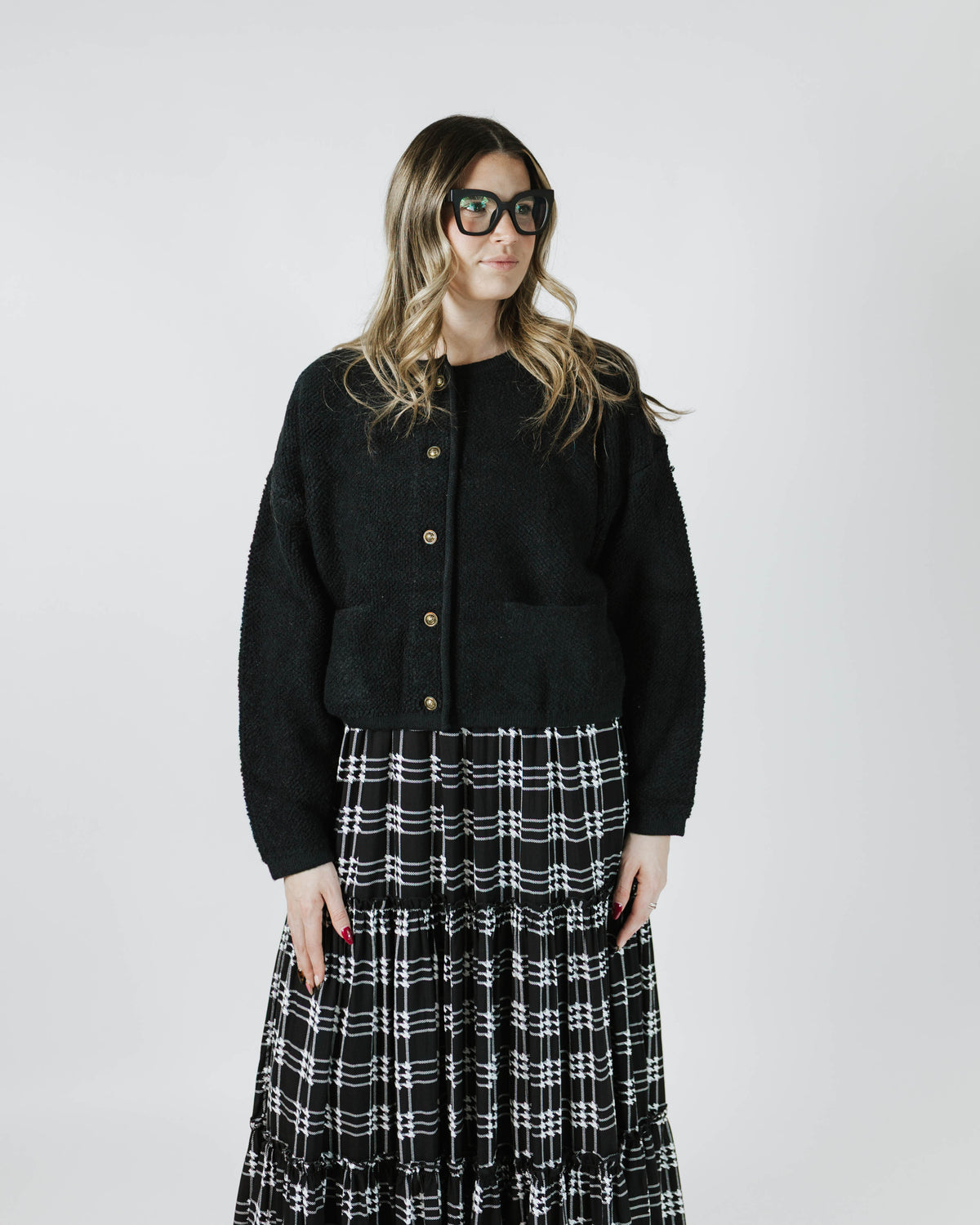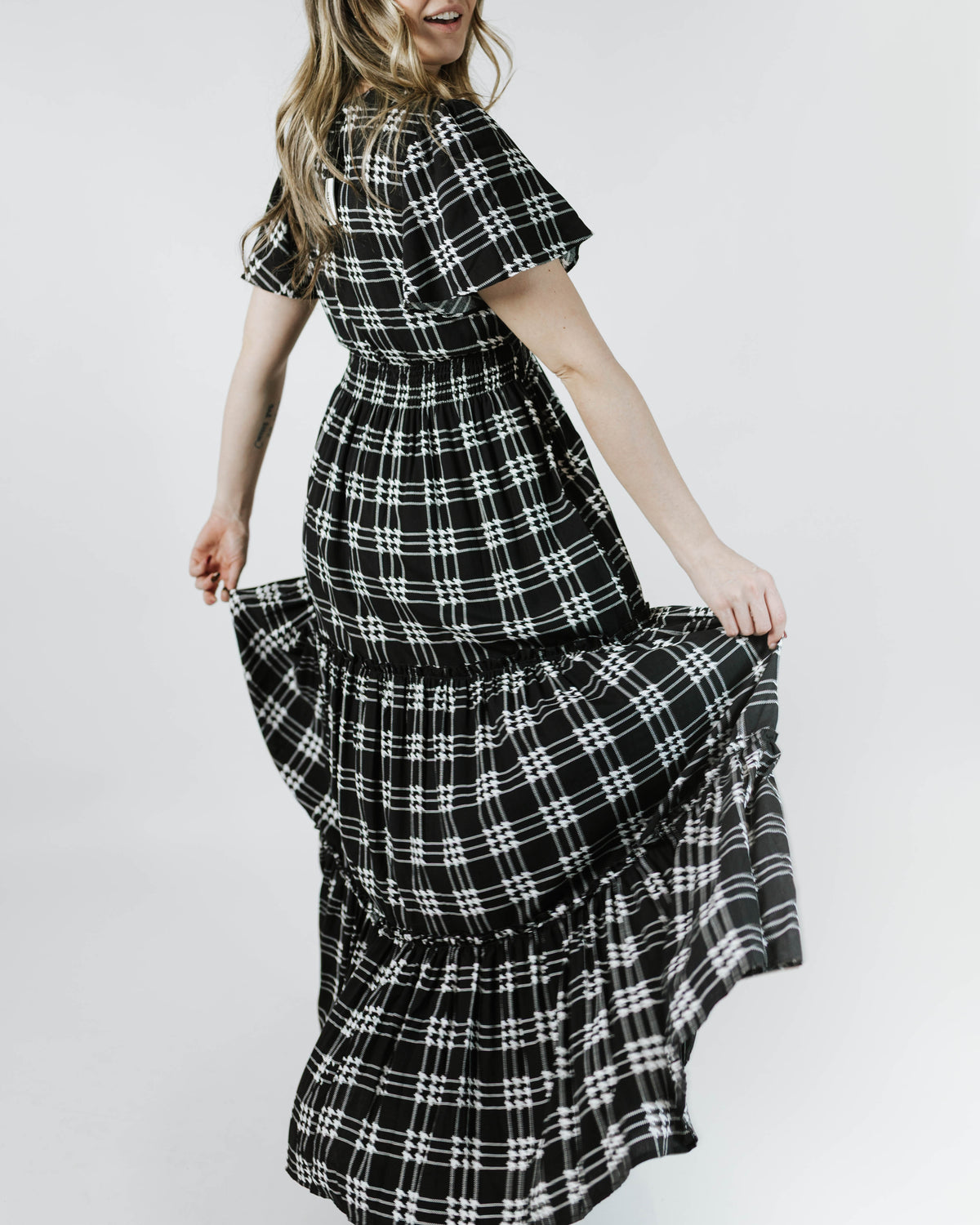 The Eden in Shadow Plaid is a sophisticated tiered maxi dress crafted from soft, breathable cotton. Featuring a classic black and white plaid pattern, this dress offers both timeless style and comfortable wear. Its tiered design adds subtle volume and movement, making it an elegant choice for various occasions while ensuring ease and grace throughout the day.
