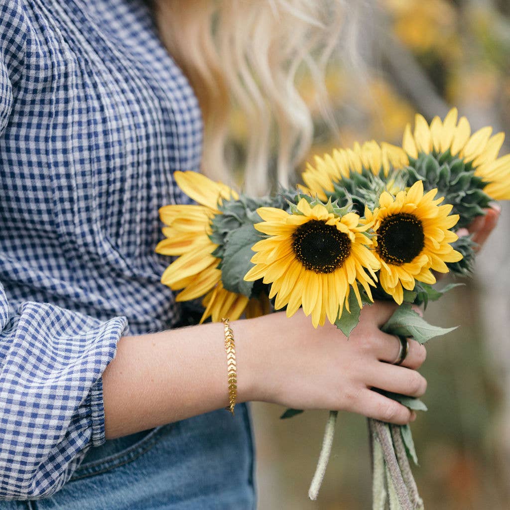 This piece is like a visual tribute to the rolling wheat fields that have become a permanent imprint on the soul of the Peace Country. Just like the perfect harvest day, the movement of this bracelet mimics the caper of ripened wheat dancing under a prairie wind.