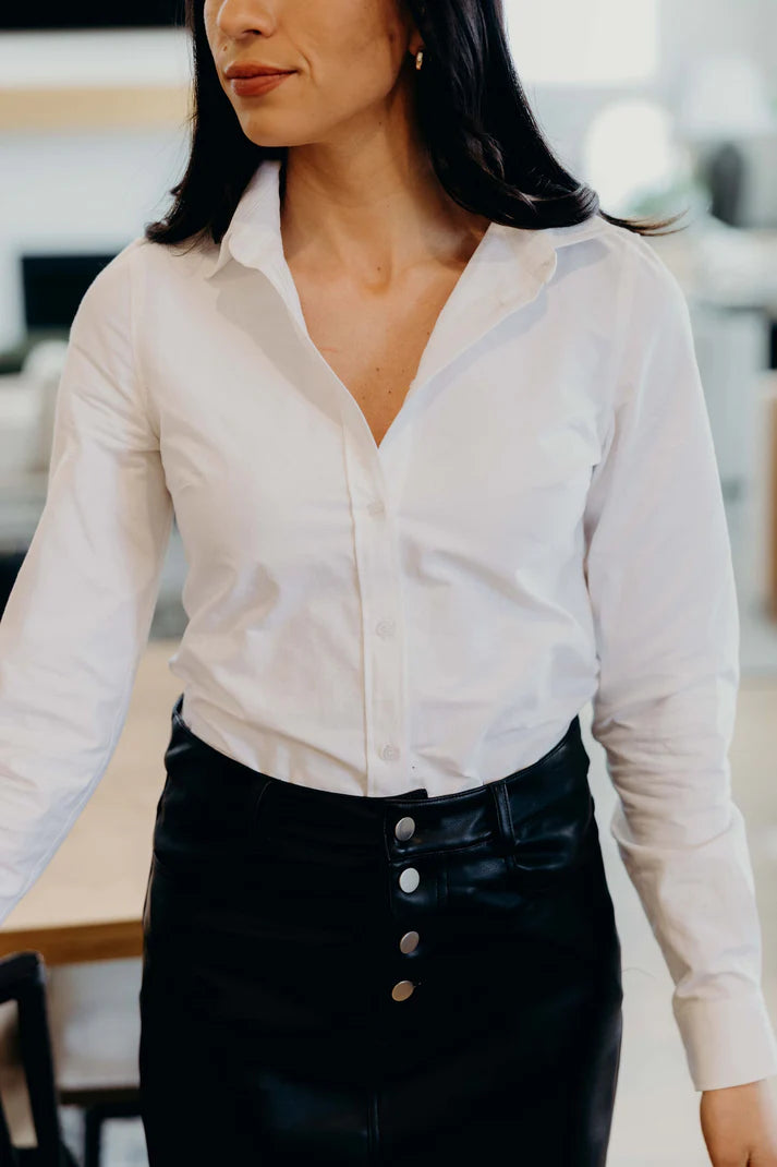 Elevate your wardrobe with this Classic Button-down in crisp white — your new go-to staple! Effortlessly versatile, it pairs perfectly with anything from jeans to skirts, making every outfit a breeze. Embrace timeless style with a fresh, playful twist that keeps your closet happy and ready for any occasion.