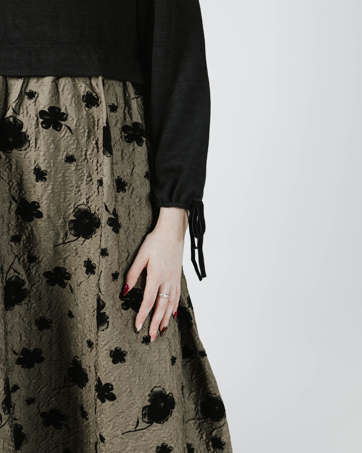 Slip into effortless elegance with this maxi dress that pairs a cozy long-sleeve sweater top with a flowy skirt. The round neckline keeps things classic, while playful ruffle detailing at the hem and charming tie cuffs add personality. Plus, functional pockets mean you can actually carry your essentials. Crafted from a comfortable polyester-spandex blend on top with a smooth polyester skirt, this piece transitions seamlessly from casual days to evening plans.