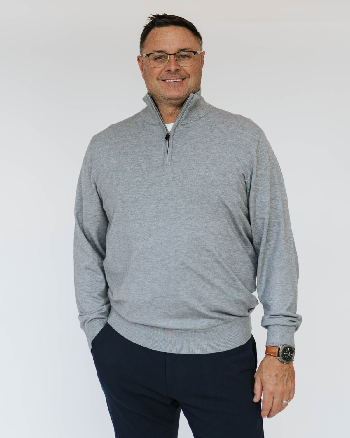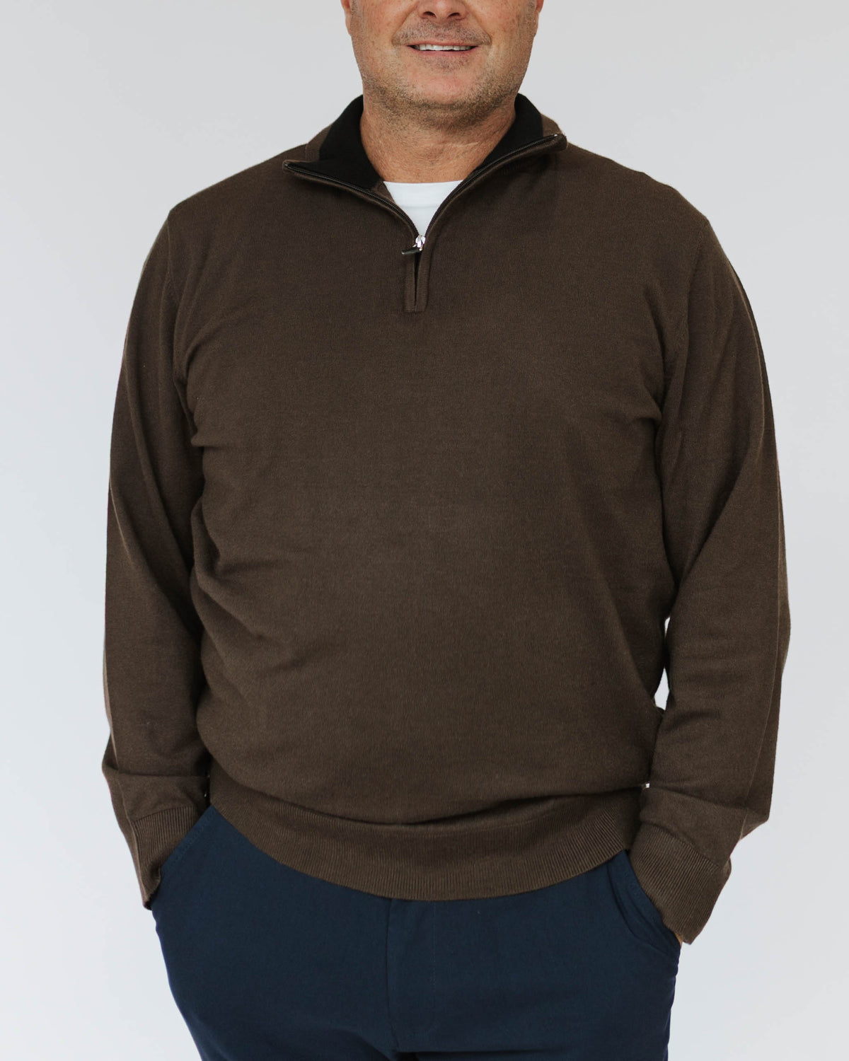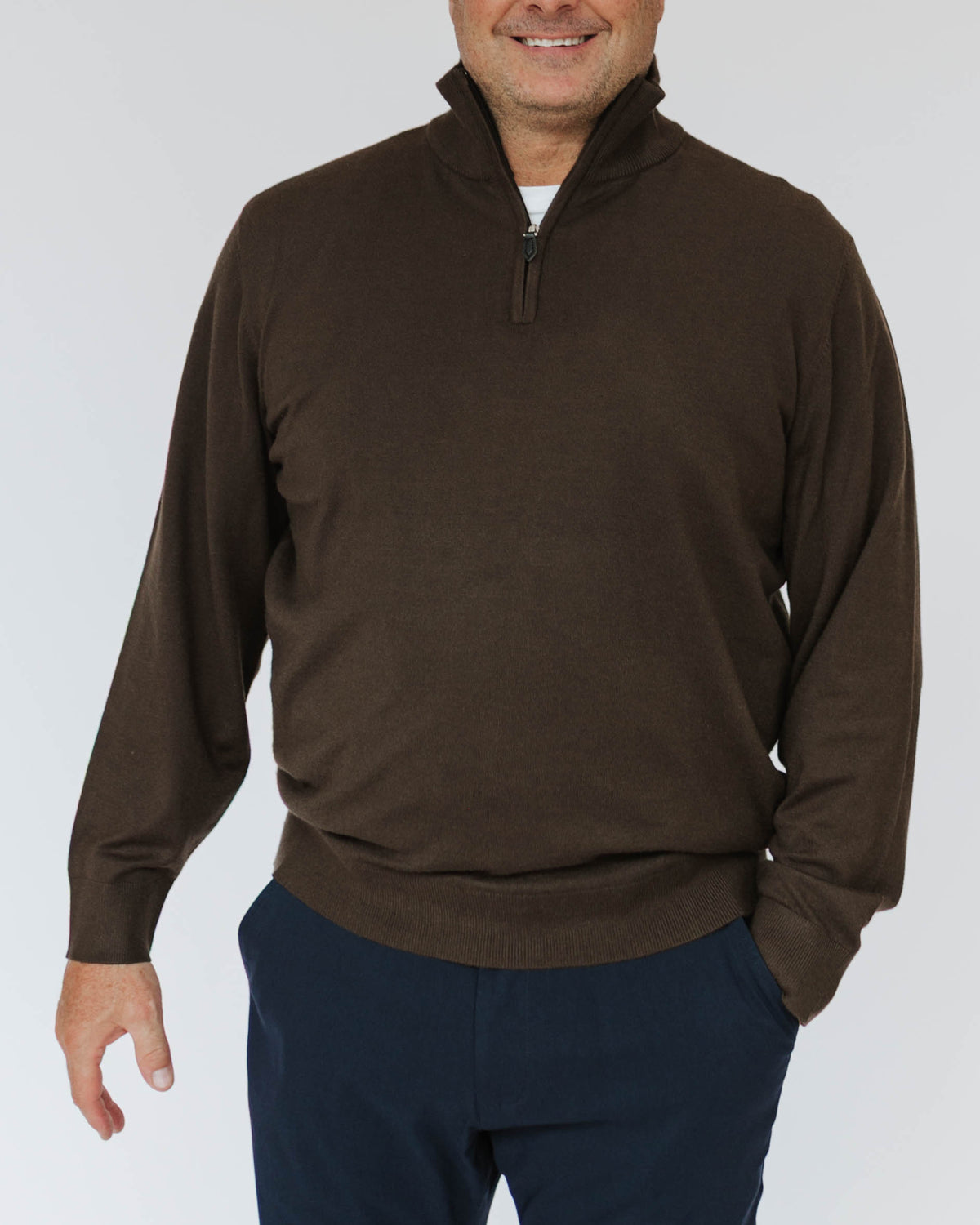The Men's Quarter Zip Cashmere Touch Sweater offers luxurious softness with the ease of low maintenance. Crafted from cashmere-like material, this knit sweater provides a cozy, comfortable feel that's perfect for cooler days. The quarter zip design adds a modern twist, making it ideal for layering or wearing alone. Easy to care for and ultra-soft, this versatile sweater effortlessly elevates your wardrobe, blending comfort with refined style.