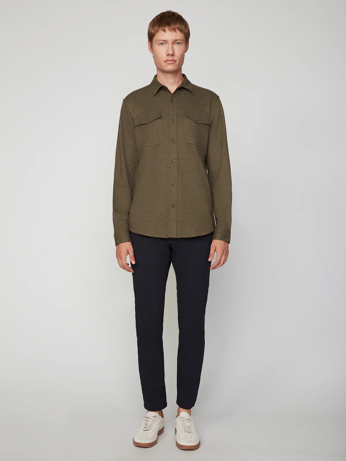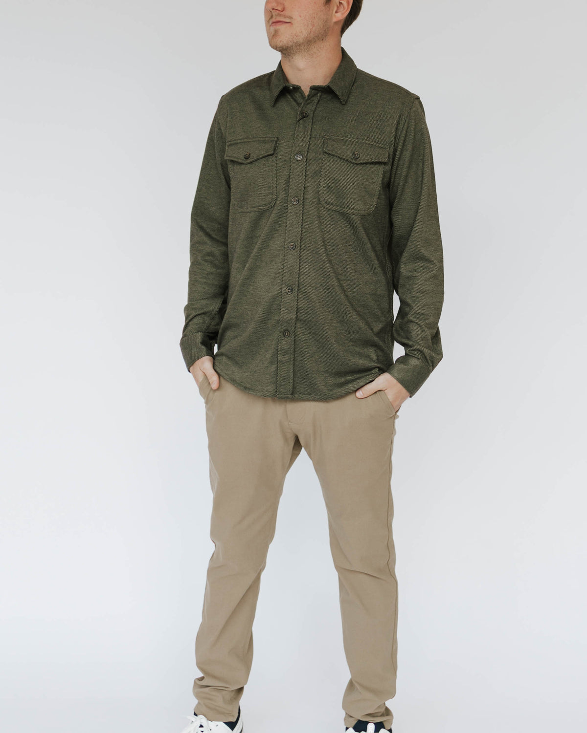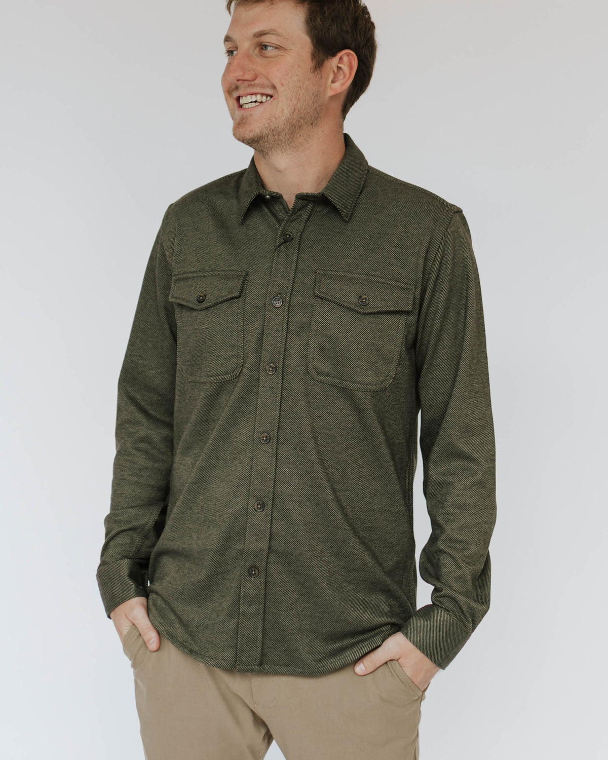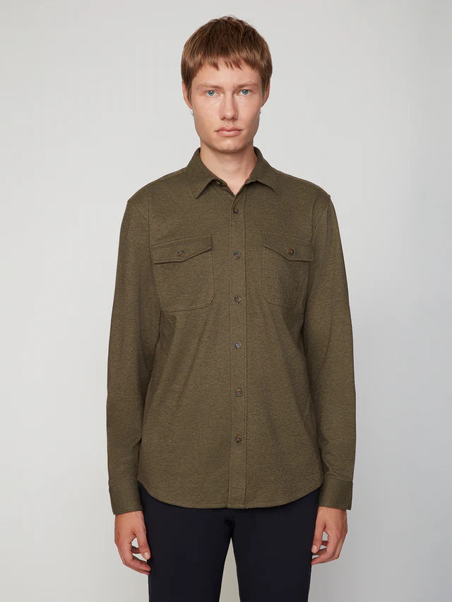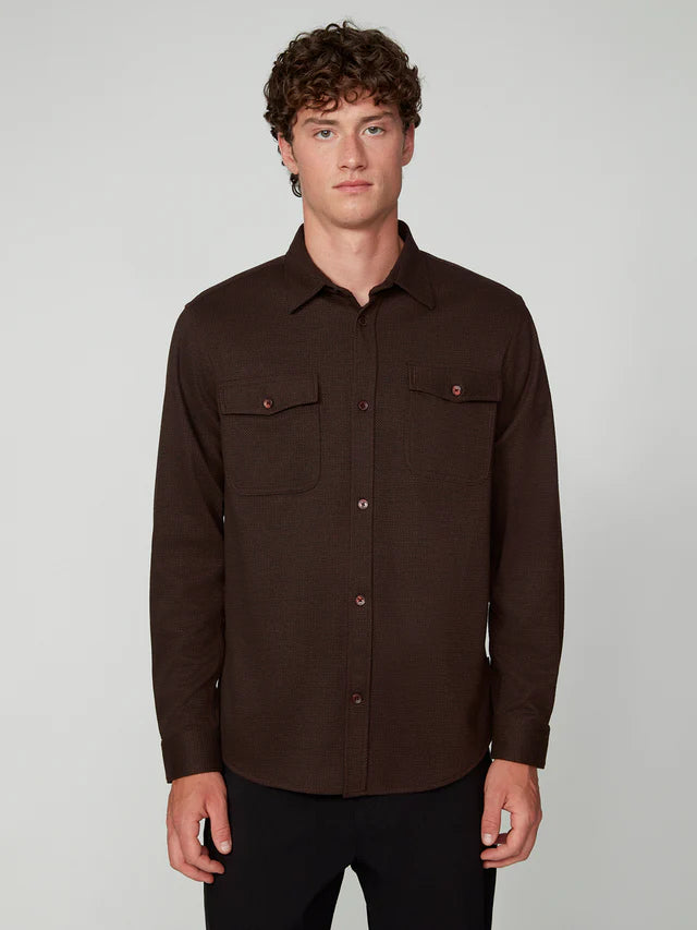 Forget stuffy flannel—this long sleeve knit shirt is where comfort meets cool. Crafted from a structured twill knit blend, it's got the polish to pair with dress pants and the chill factor to throw over your favorite tee. Whether you're heading to the office or hanging with friends, this button-up adapts to whatever your day throws at it. Layer it, wear it solo, or make it your new go-to for looking effortlessly put-together.