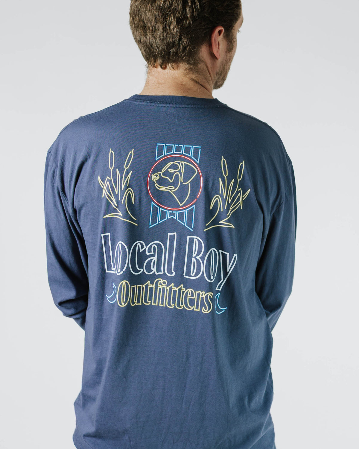 Crafted from 100% cotton and made with a traditional fit, Local Boy Long Sleeve T-Shirts were designed with comfort and style in mind. Featuring a left chest pocket with our Local Boy logo and a bold design on the back, our t-shirts are wardrobe essentials.