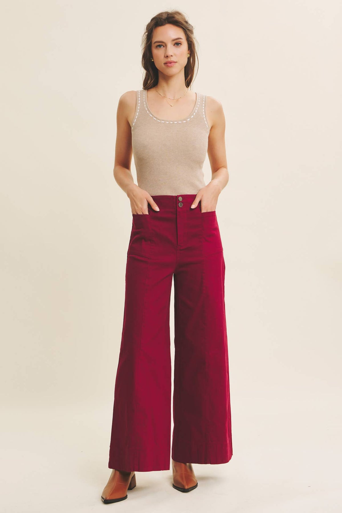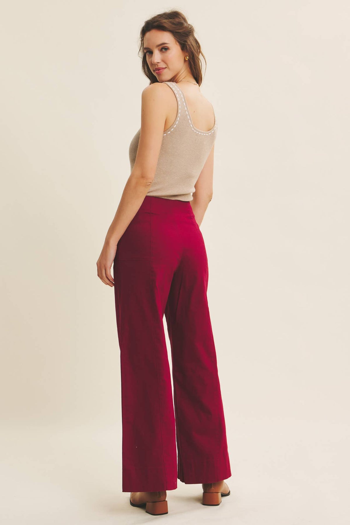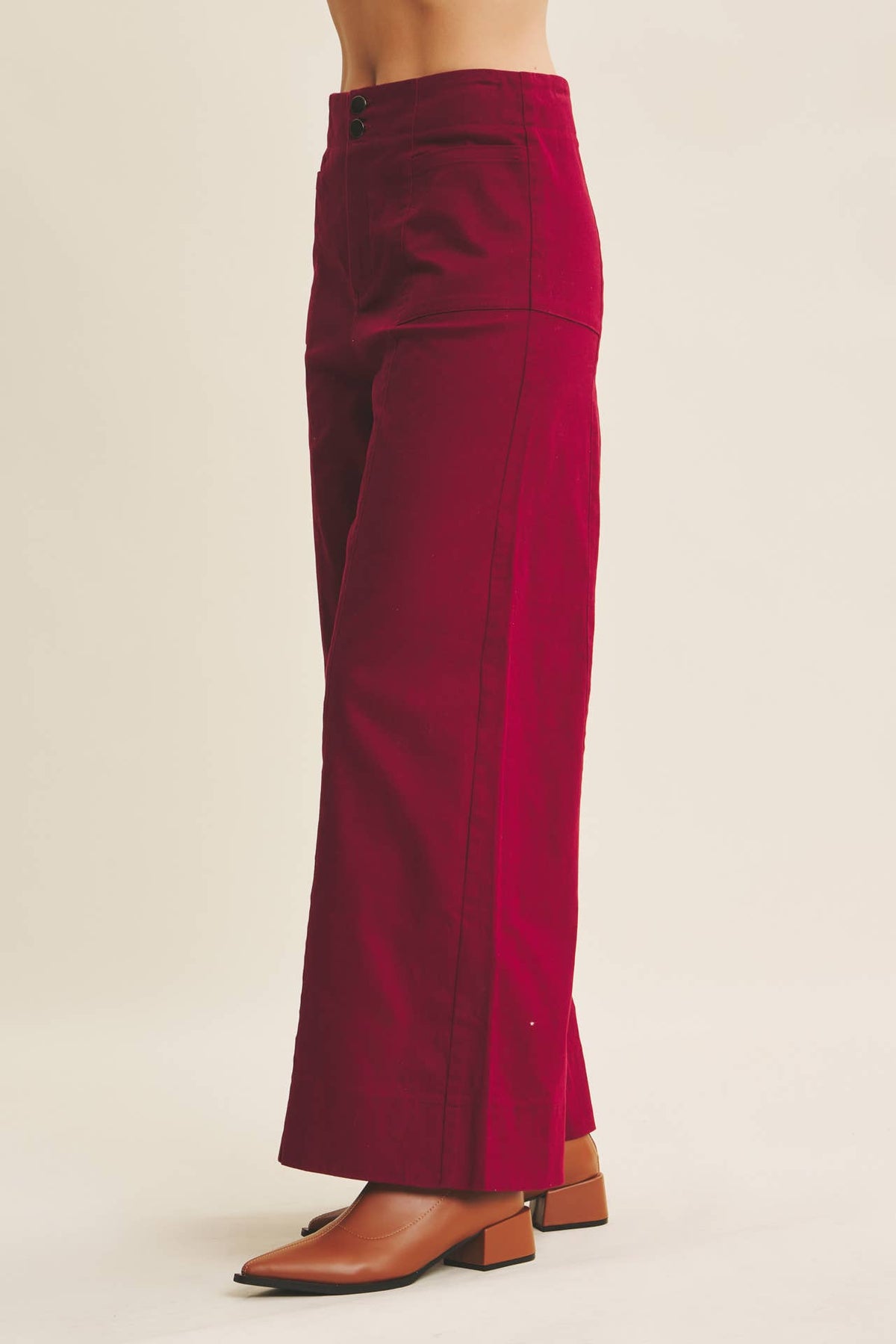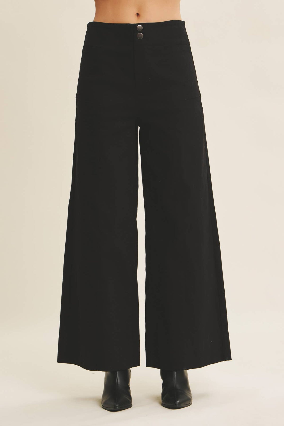 These wide-leg ankle pants are your new wardrobe MVP. Made from stretchy cotton twill, they move with you while maintaining their polished shape. The two-button and zipper closure keeps everything secure, while functional front pockets mean you're always prepared. The ankle-length cut hits just right, giving you a sleek silhouette that works with everything from sneakers to heels. Comfort and sophistication wrapped up in one seriously wearable pair.