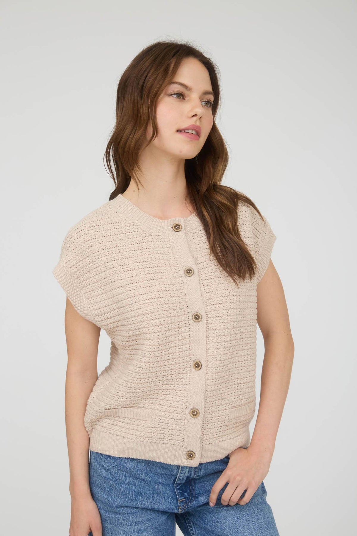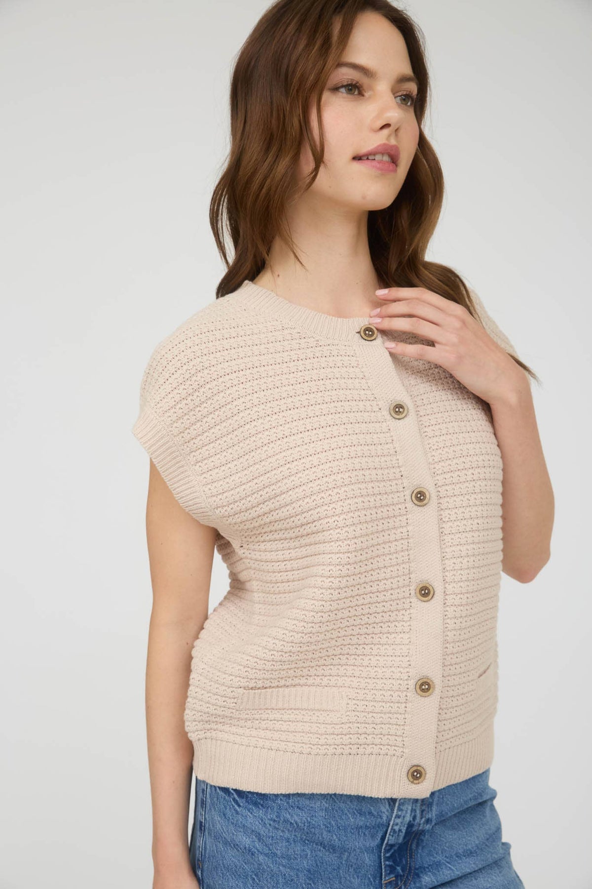 Button Down Short Sleeve Knit Cardigan Vest