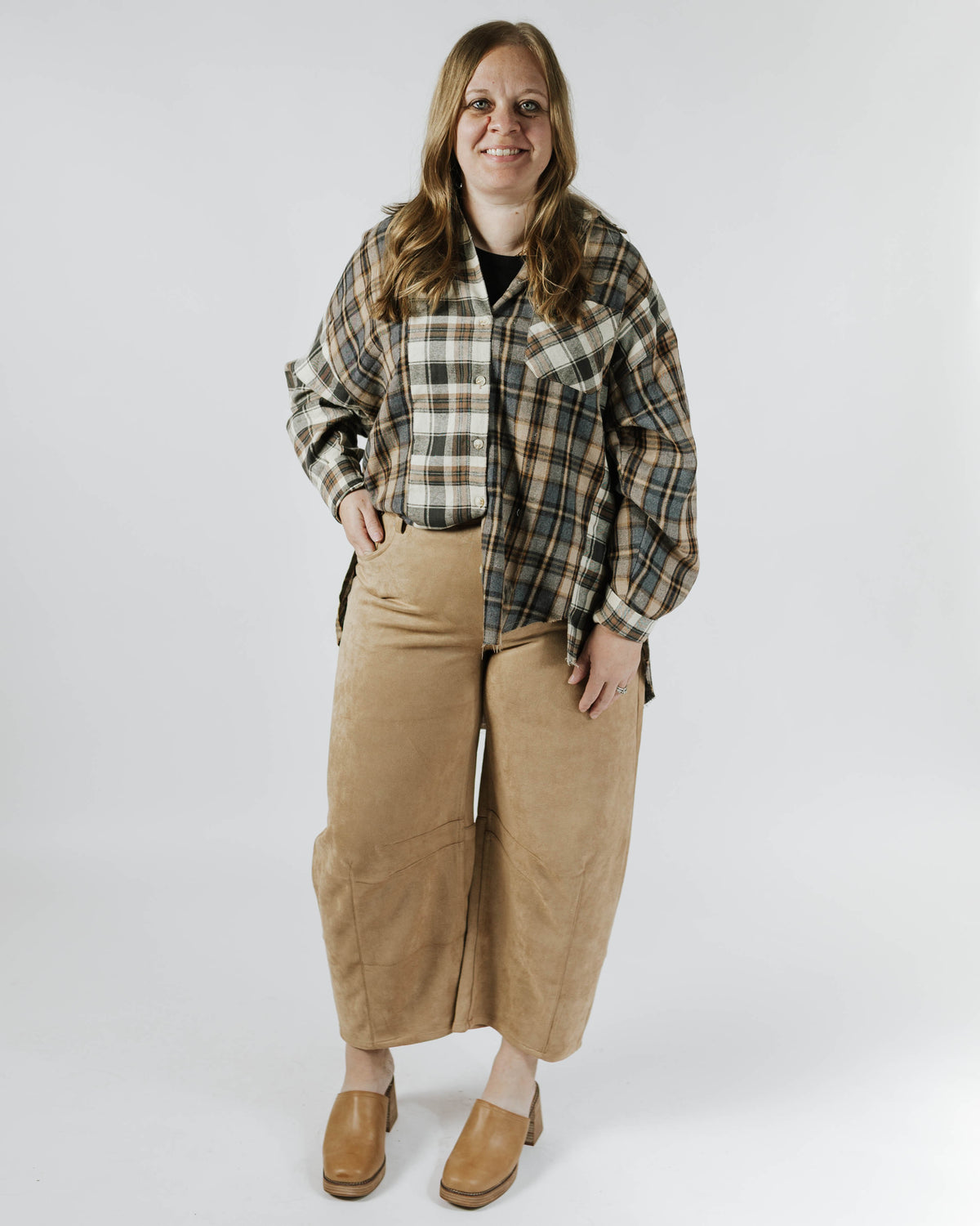 Introducing Noelle—the flannel that breaks all the rules. With its bold patchwork splice design and deliberately off-kilter hem, this oversized shirt delivers effortless cool without trying too hard. Perfect for those who'd rather stand out than blend in.