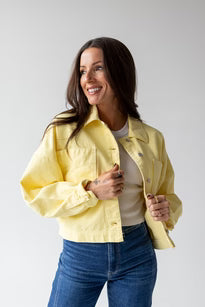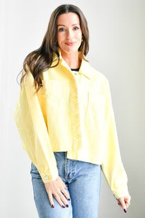 Show your school spirit in style with the Iowa Sanders Embroidered Jacket. This buttery yellow button-up jacket features a bold embroidered design on the back, making it perfect for game days or casual outings. Lightweight and comfortable, it’s your go-to layer for showing off your Iowa pride with a fun twist. Perfect for those who love to stand out while staying cozy!