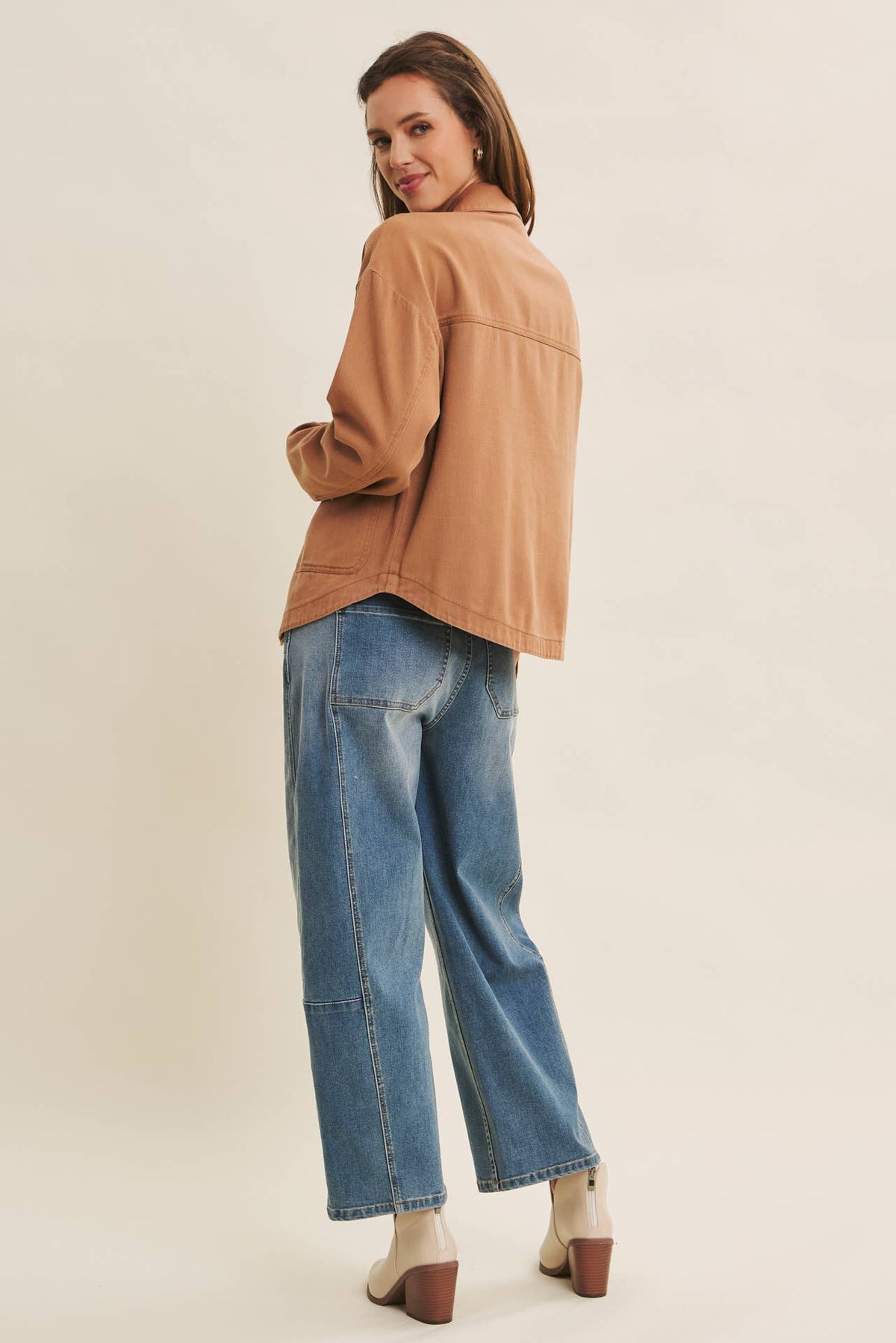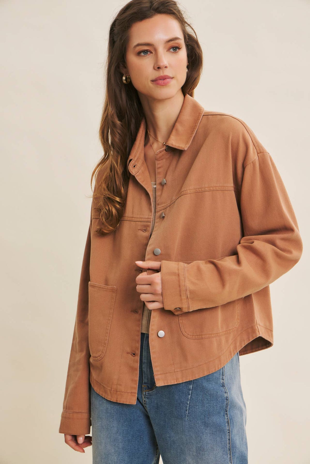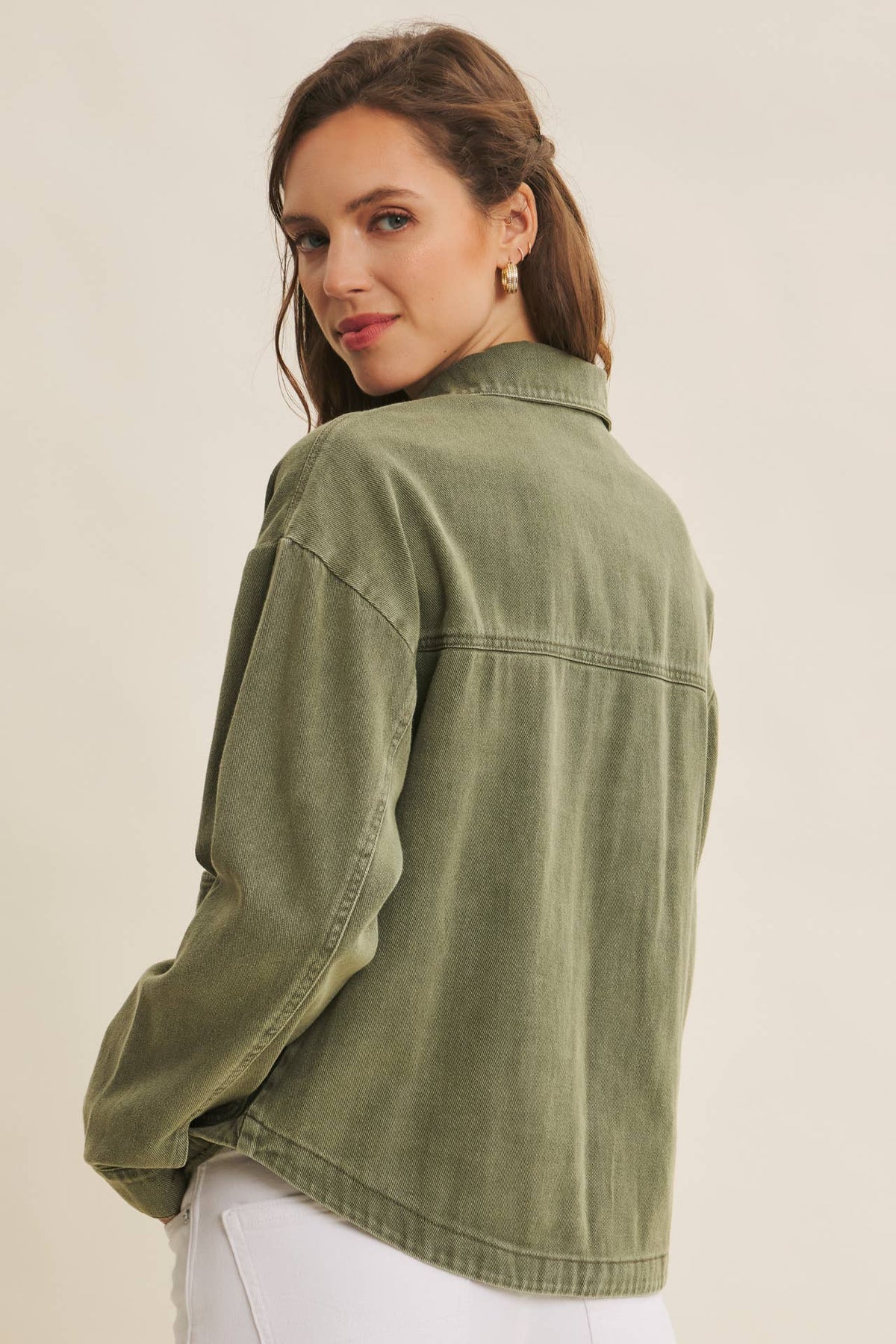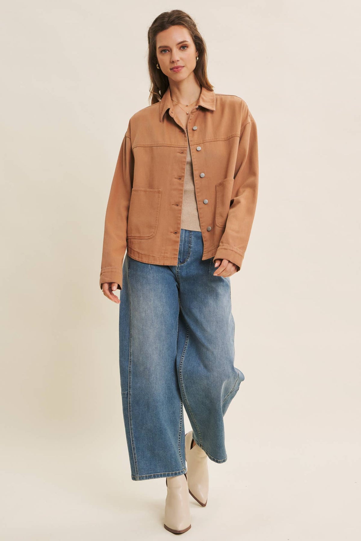 Washed Cotton Twill Utility Jacket In Oversized Fit