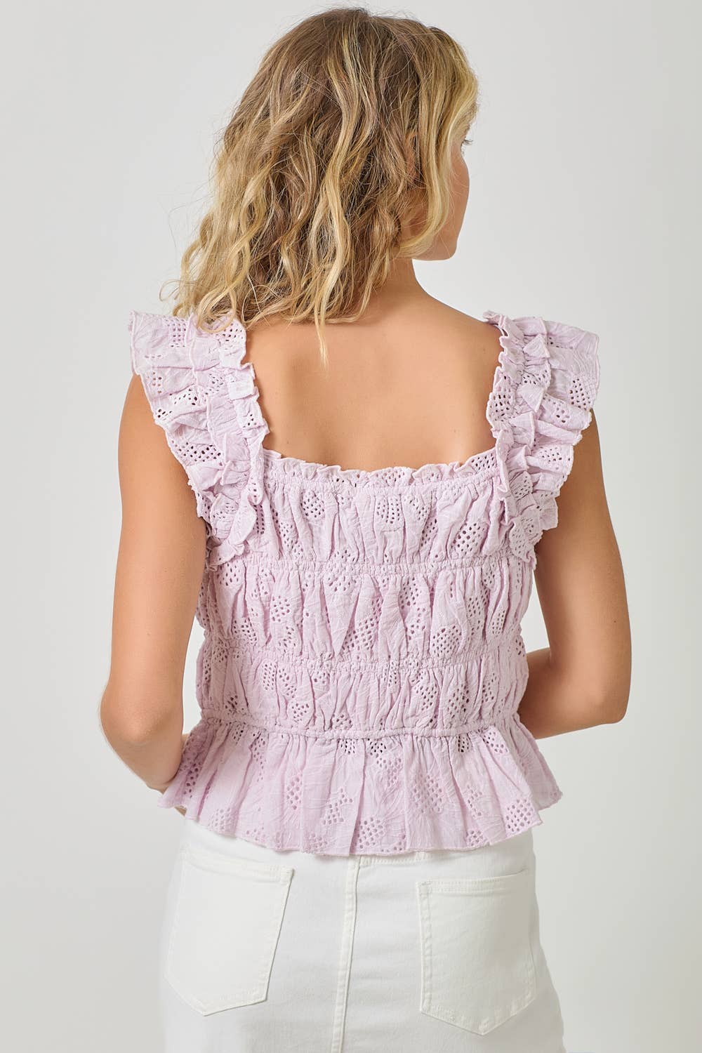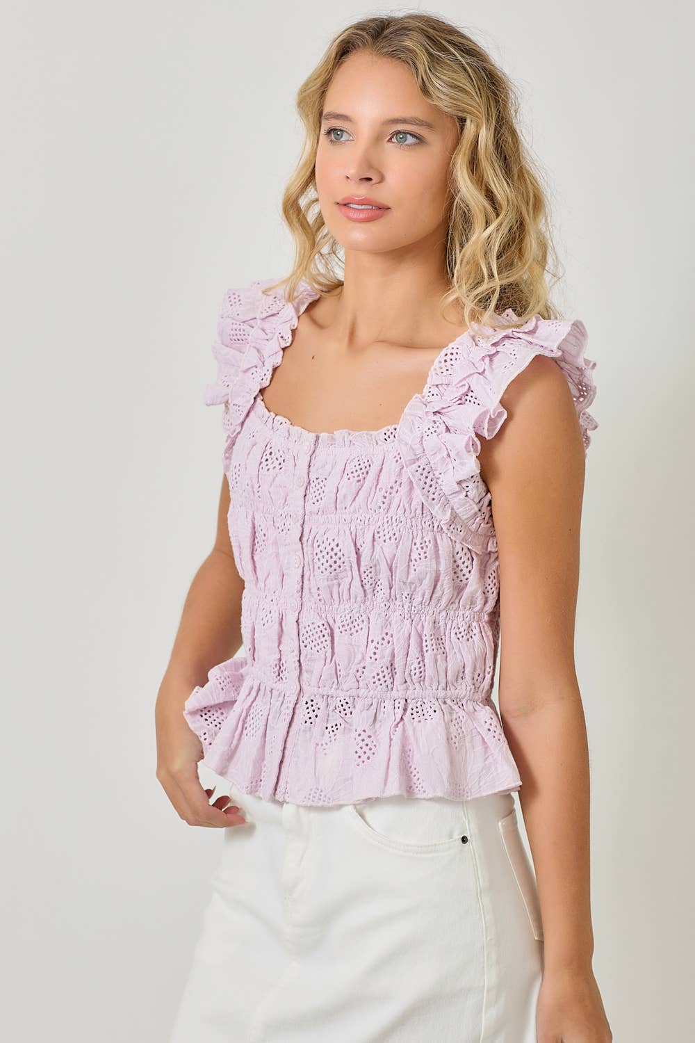 Ruffle Shoulder Ruched Top