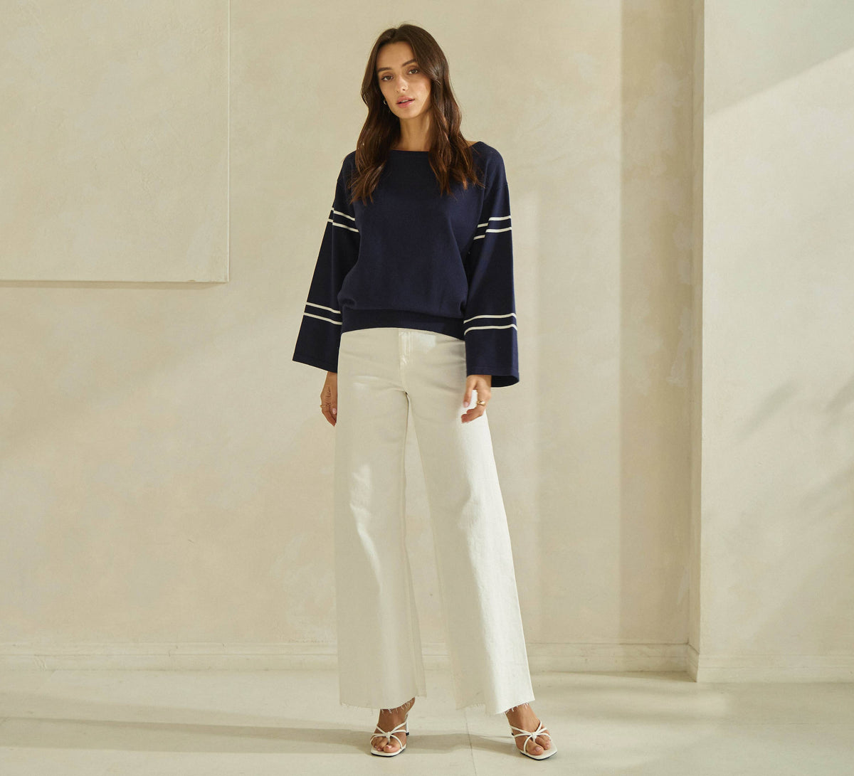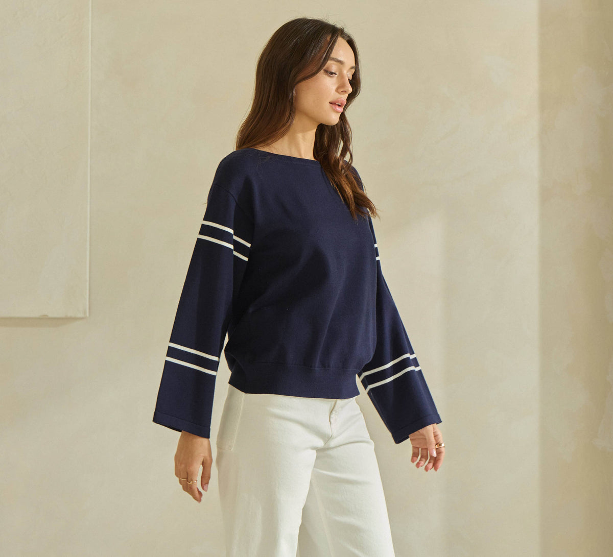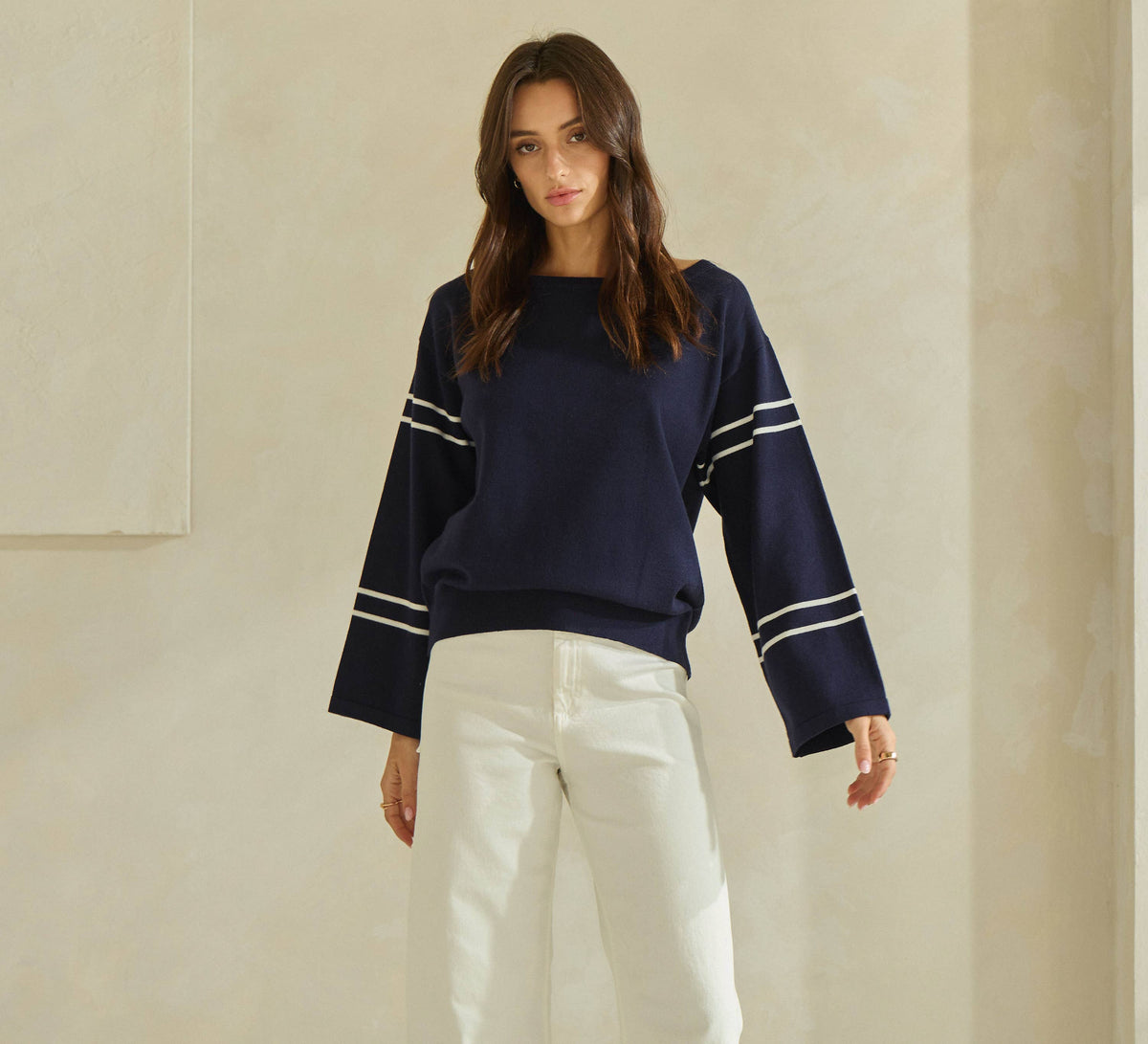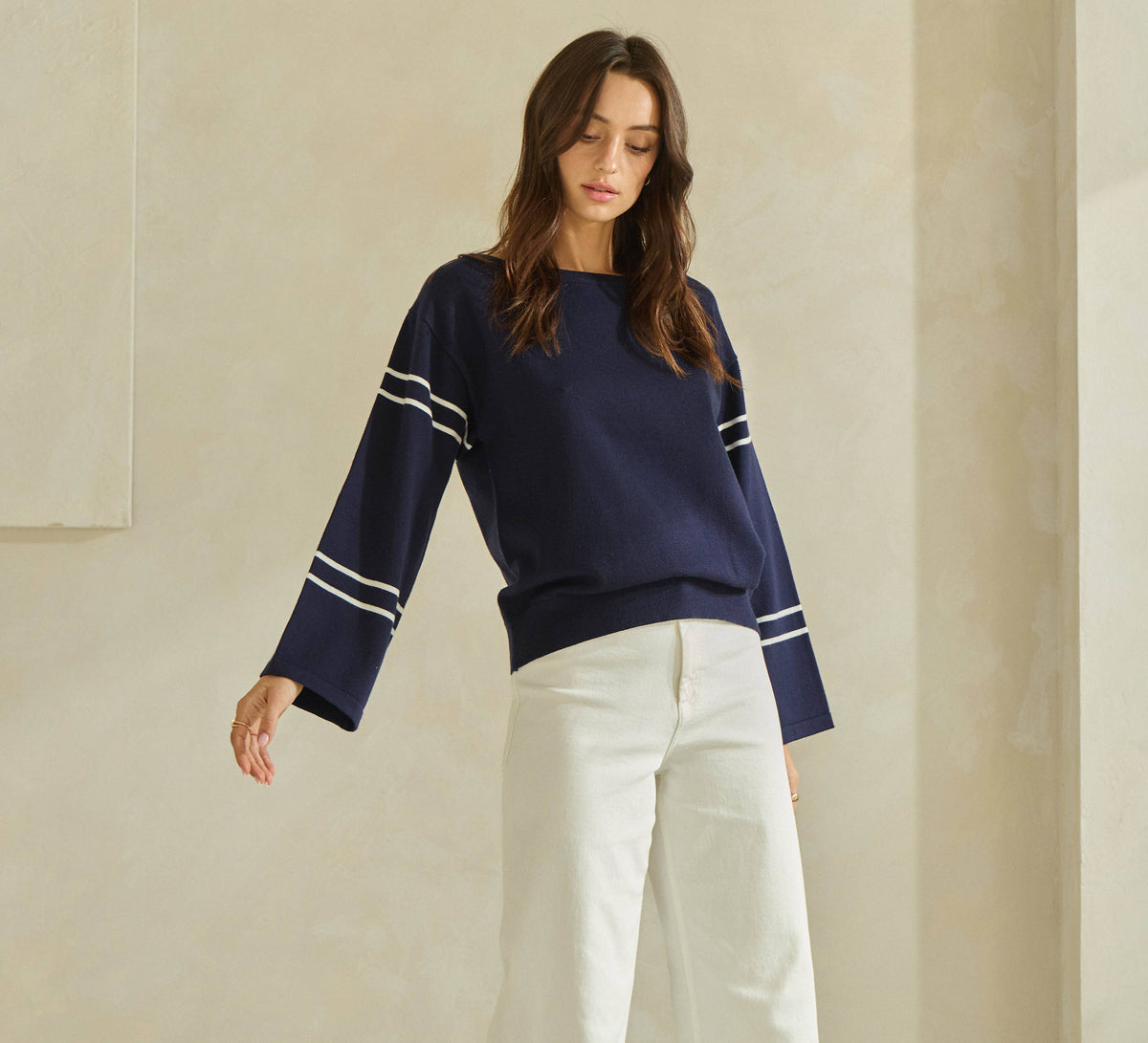 Rock a timeless striped look with this boat neck knit top, complete with cozy long sleeves perfect for layering. Our model (5'8") is sporting the US Small, so you can get a real sense of how it'll fit. We're thrilled you're here—thanks for supporting Able!