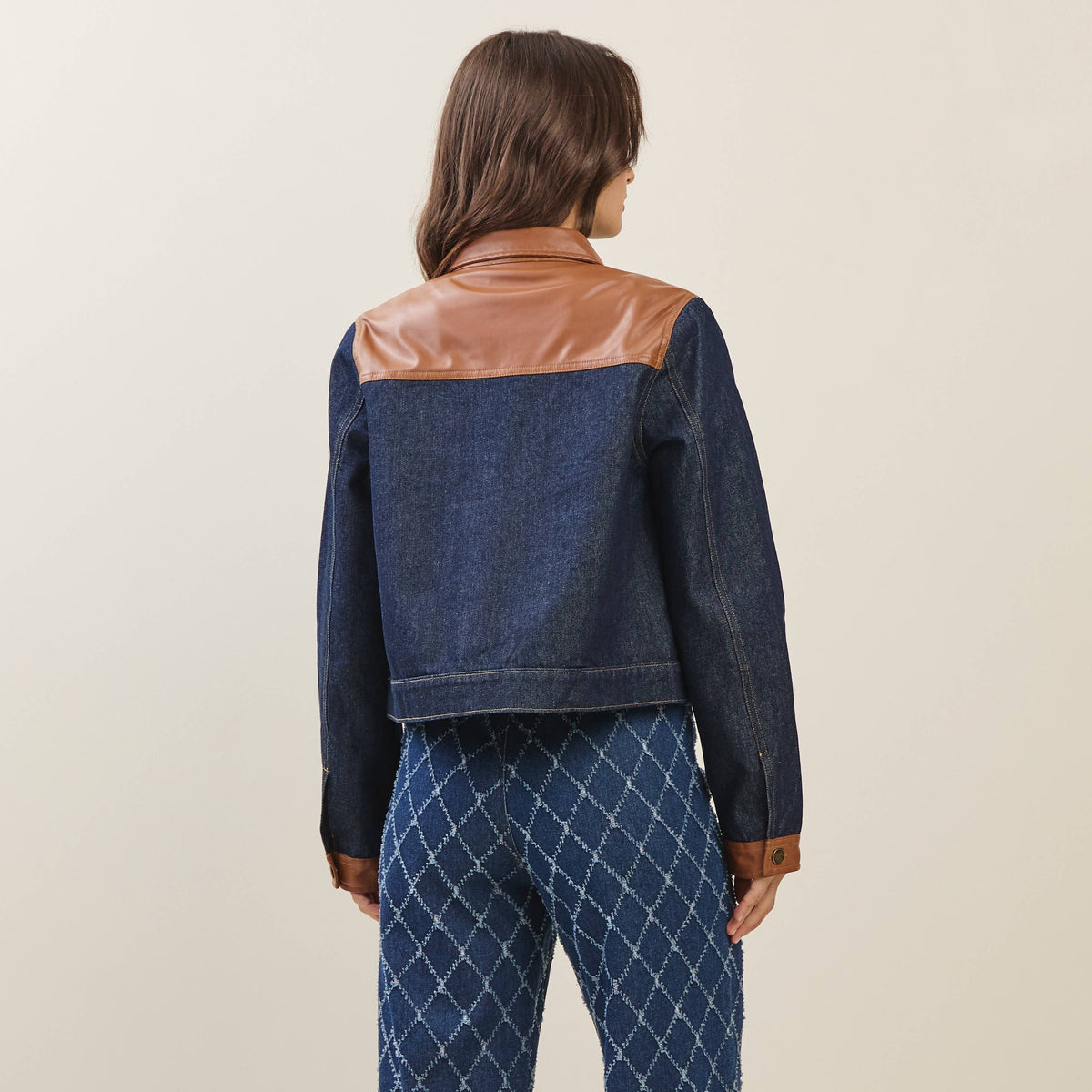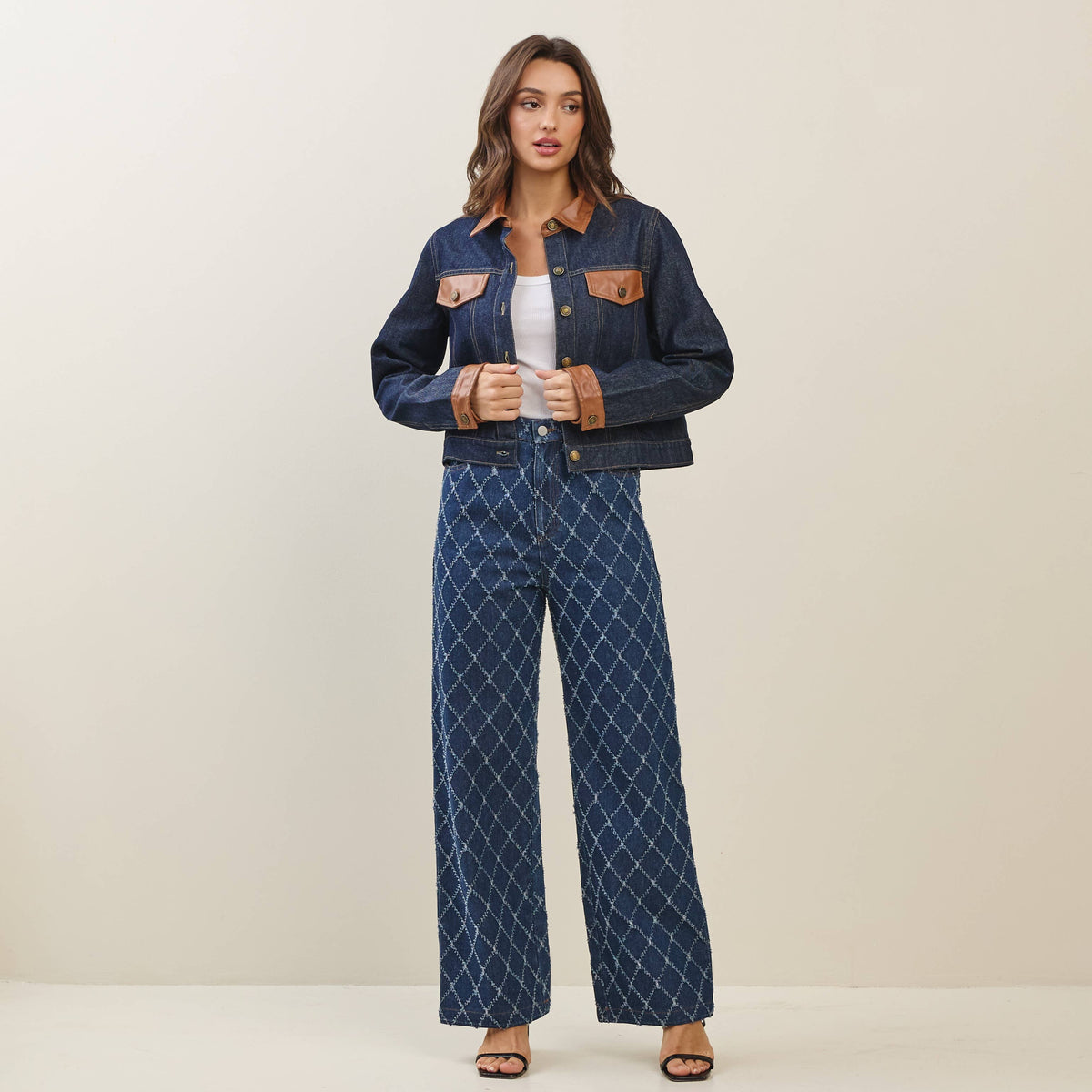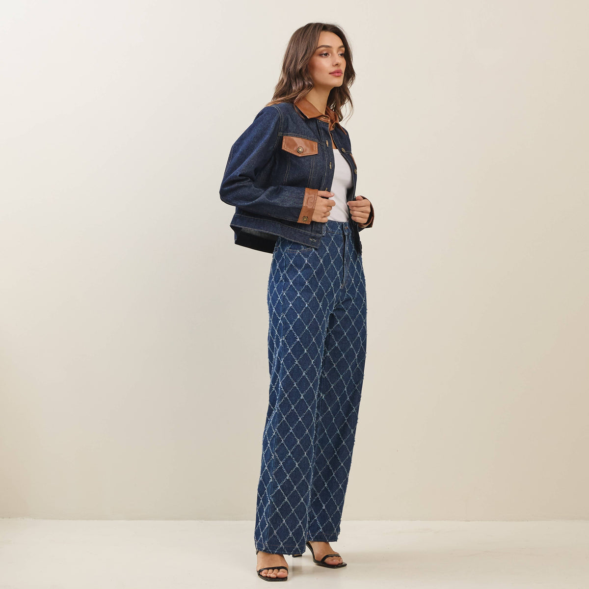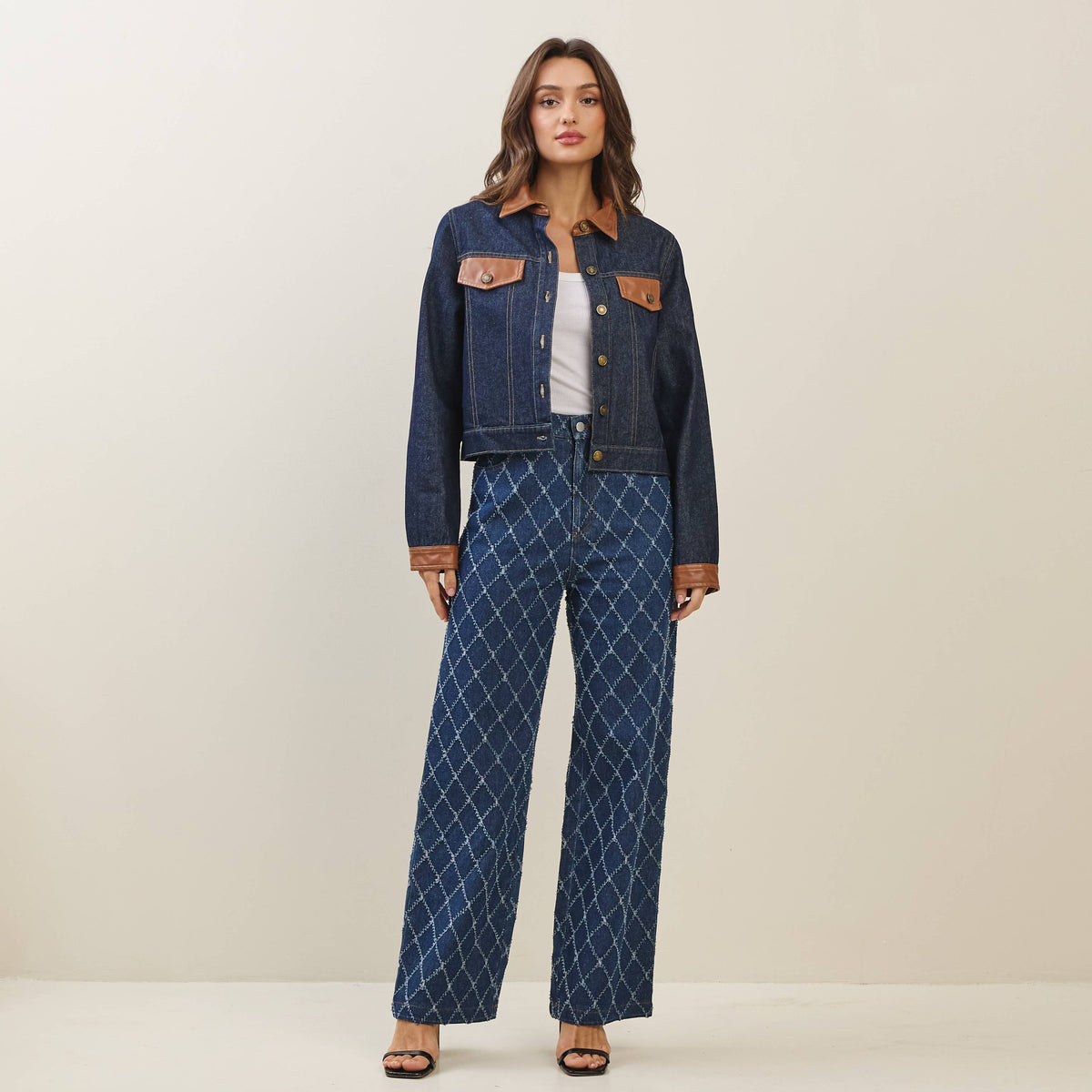 This jacket brings together the best of both worlds with dark denim and faux leather trims for a bold, mixed-media look. The vegan leather collar adds an edgy twist while keeping it cruelty-free. Perfect for those who like a playful, standout style without compromising on comfort or ethics. Dress it up or down for endless outfit possibilities!