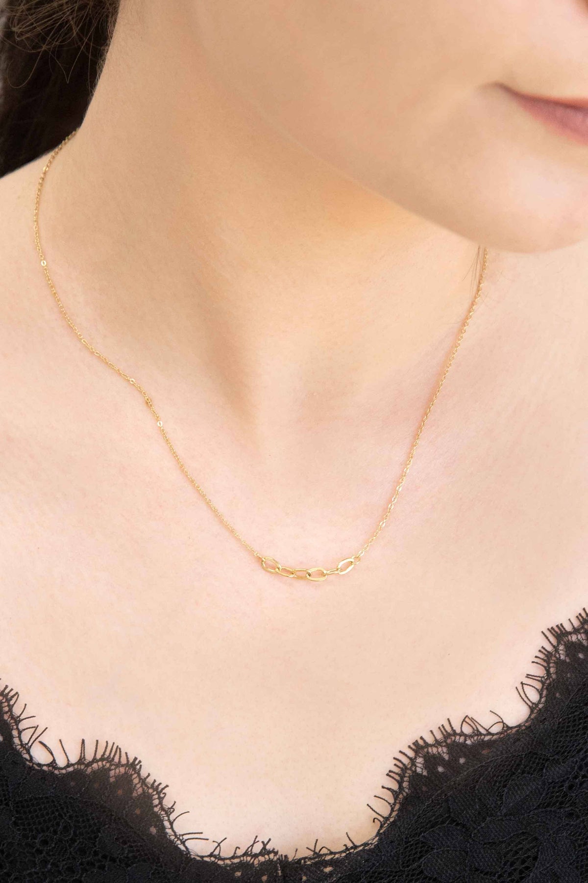 A thin gold chain with a larger chain design in the middle, super simple super cute! • 14K Gold over Sterling Silver Measurements: • Length: 16.5 in. / 41.9 cm. • Extension: 2.5 in. / 6.3 cm.