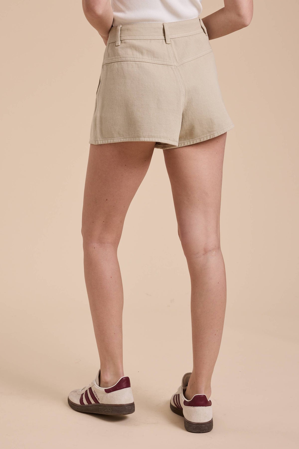 The Pleated Front Detail Shorts by MIOU MUSE are stylish and comfortable, perfect for warm-weather wear. Made from 100% cotton, these beige shorts feature pleated front detailing for a chic look.