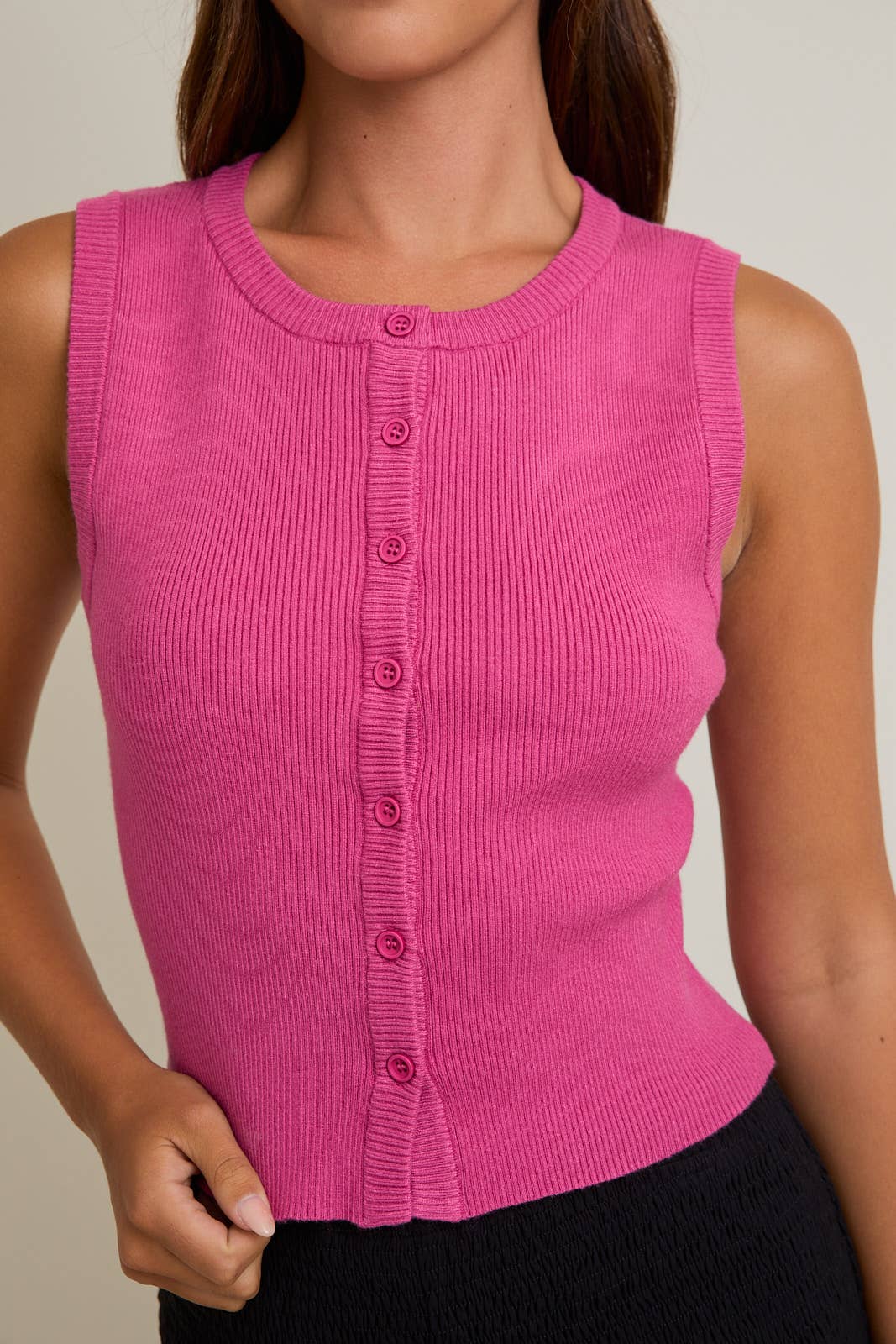 Sleeveless Round Neck Button Down Ribbed Sweater Top