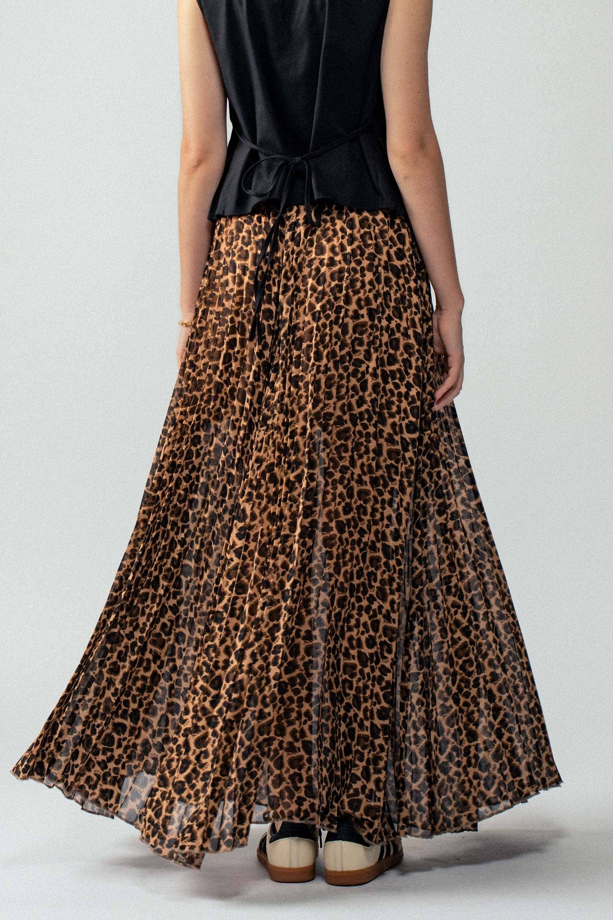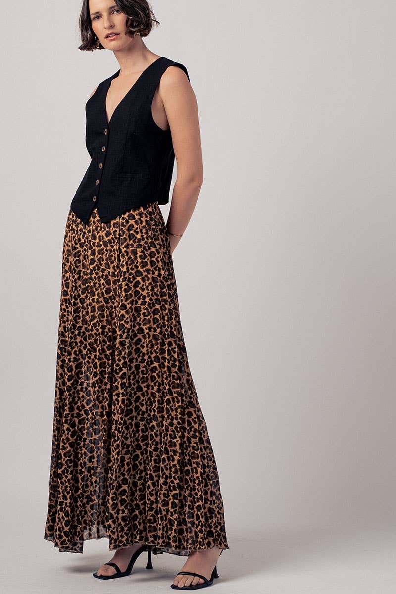 Sophisticated Leopard Print Pleated Flowy A Line Midi Skirt