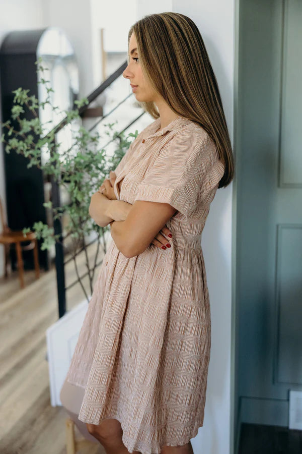 The Blanche in terracotta offers a relaxed fit and flare silhouette that flatters while ensuring comfort. Crafted from 100% cotton, this knee-length dress features elegant button and collar details for a polished look. Its breathable fabric and classic design make it ideal for both casual outings and more refined occasions.